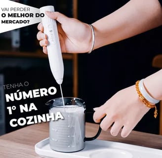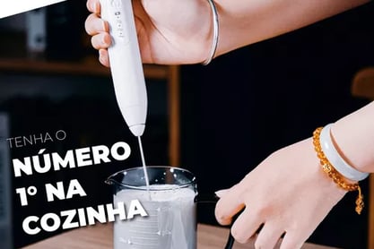 Leve, portátil e multifuncional, o mini mixer elétrico é ideal para misturar achocolatado, café com leite, cappuccino, shakes e até ovos para omelete.