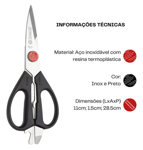 A Tesoura Mundial 666N é ideal para quem busca agilidade na cozinha. Com design ergonômico, lâminas de aço inox e corte preciso, ela facilita desde o preparo de carnes até o corte de embalagens. Totalmente desmontável, é fácil de limpar e perfeita para quem é canhoto, oferecendo conforto e eficiência no uso diário.